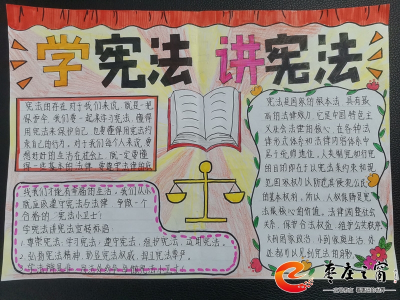 據(jù)悉,棗莊市實驗小學各中隊通過召開“學憲法,講憲法”主題隊會、制作主題手抄報、“學憲法 講憲法”知識競賽等活動,激發(fā)學生學習憲法知識的熱情,強化了師生的法治意識,為平安法治校園建設營造了良好氛圍,為“幸福+”教育再添新的精神源泉。(趙敏)